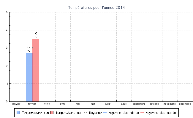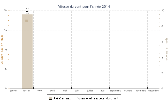 | fevrier | 2.7 °C | 2.7 °C | 3.5 °C | 3.5 °C | 3.0 °C | 9.2 km/h | 19.0 km/h | NE |